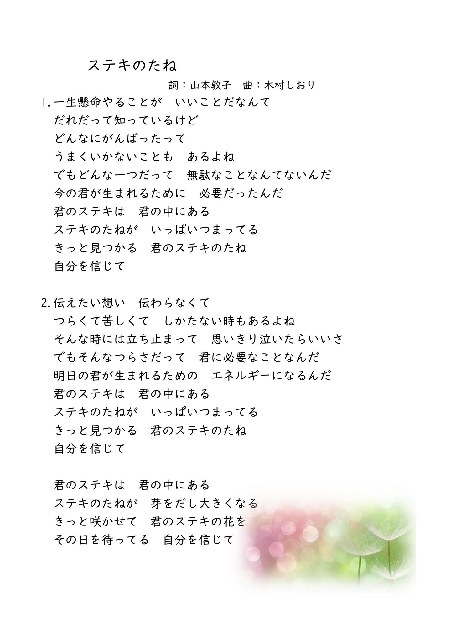 01 GENKIパラダイス.mp3 02 のんびり歩こう.mp3 03 空はいいよな.mp3 04 耳をすませて.mp3 05 サボテン.mp3 06 おさるとリンゴ.mp3 07 ひよこのさんぽ.mp3 08 キツネ印のミラクル変身ショップ.mp3 09 動物村の村長さん.mp3 10 ベジタブル・ファイブ.mp3 11 大きな窓の下で.mp3 12 バラの花束.mp3
